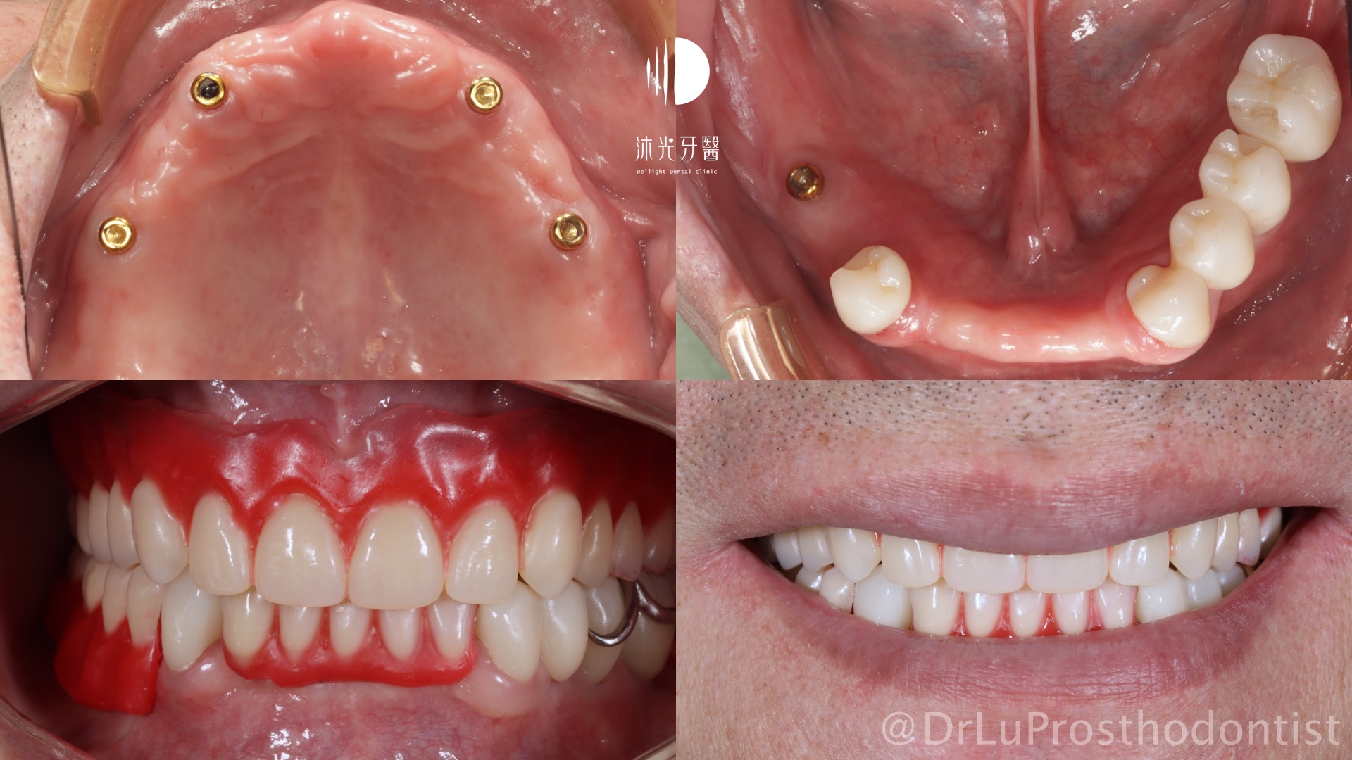 今天要分享的是以植牙支撐活動假牙來完成全口重建的治療案例。